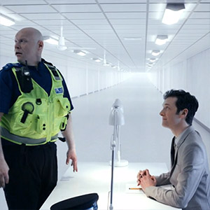 Seb was first seen in The Caretaker interviewing someone in an office-like enviroment