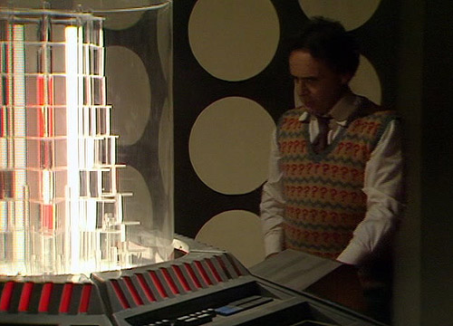 This version of the console room set was last seen in The Greatest Show in the Galaxy. The BBC no longer had the set for season 26 so a darker temporary set was constructed for a scene in Battlefield.