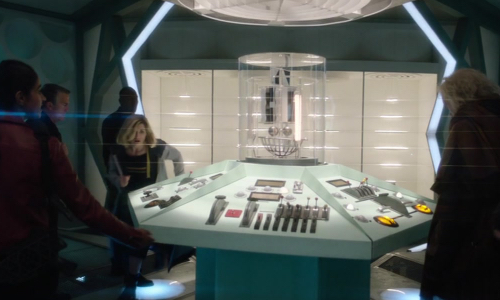 Unbeknown to them, the Doctor and companions had already been inside the Master’s TARDIS. When they were all on a plane the Master pointed it out to them revealing his true identity. This was the first time the Master’s TARDIS had been seen in the ‘new series’ of Doctor Who.