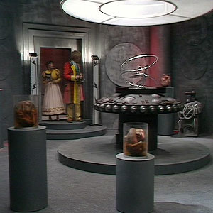 The Rani’s TARDIS appeared alongside her in all three stories she appeared in. The exterior and interior appearance changed each time. Apart from Shada which didn’t air on TV, The Mark of the Rani showed for the first time a completely new interior design that was different to the Doctor’s TARDIS.