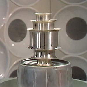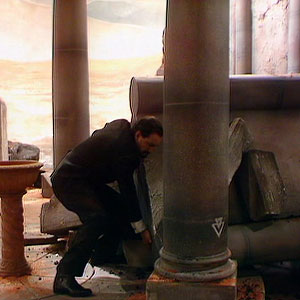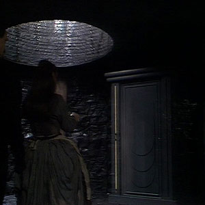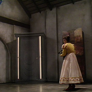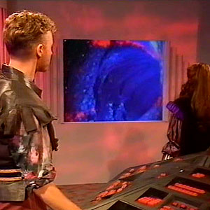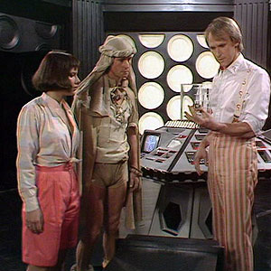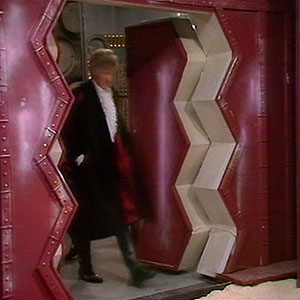 The Master escaped back to his TARDIS in The King’s Demons. In the next season the TARDIS reappeared as a three-sided column in The Planet of Fire. The dark interior was also shown for the first time since Castrovalva.