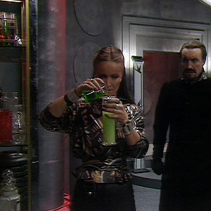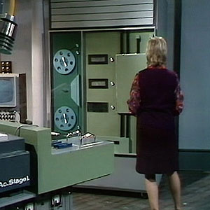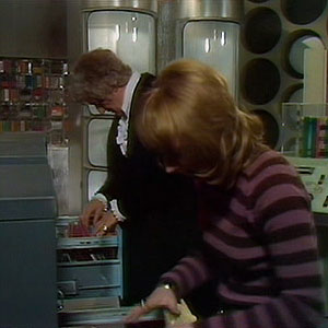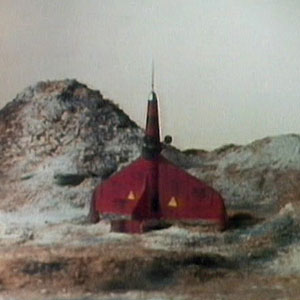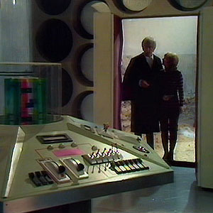 In Colony in Space the Master’s TARDIS console room was shown for the first time. It was similar to the Doctor’s TARDIS, it had the same style console in the centre of the room. The walls had the traditional roundels. It had a lot of extra furniture such as the filing cabinets. Notice how the doors are different on the exterior to show it is disguised as the red rocket.