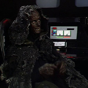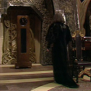 A physically decayed version of the Master made a return in The Deadly Assassin. His TARDIS was disguised as a grandfather clock. Four seasons later the Master’s TARDIS disguised itself as The Melkur and a grandfather clock in The Keeper of Traken.