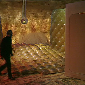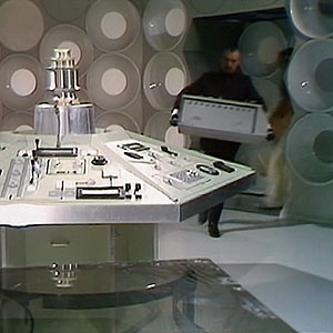 A new set was built for both the Doctor’s and the Master’s TARDIS. Doors leading to the TARDIS interior were shown in the Master’s version. The only real difference was that the time rotor had the glass case missing.